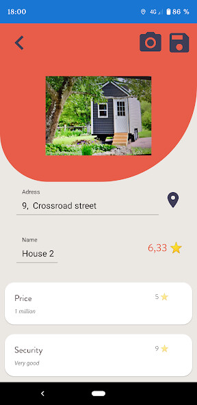 Create a real estate entry, take pictures, and rate each criterion on a 0 to 10 scale.