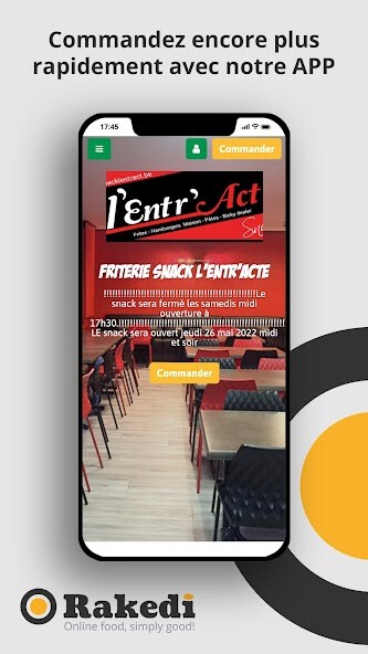 We provide Snack LEntrAct online (apkid: com.rakedi.snacklentract) in order to run this application in our online Android emulator.