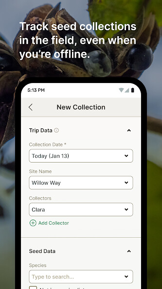 Using a mobile device, seed collectors can easily keep track of the number and types of seeds they gather.