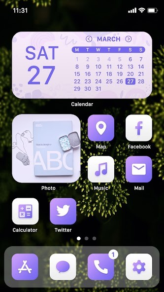 - Supports three widgets: calendar, photo, clock and more designed in gradient violet theme style