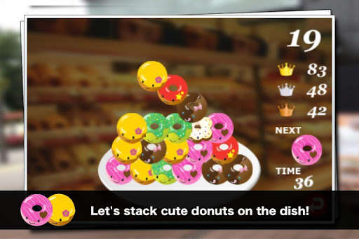 It is a game to compete to score as more and more stacked in a plate cute doughnuts.