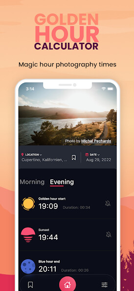 Download this app named Golden Hour Calculator.