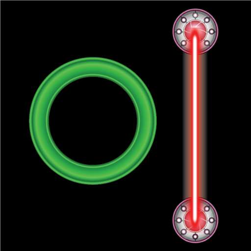 This game's goal is to pass green circle throught laeser bar.Here are green and red circles on the universe.