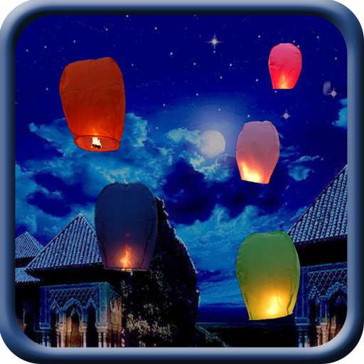 Pongal Night Live Wallpaper :Colorful Flying Paper lanterns for Night Sky.