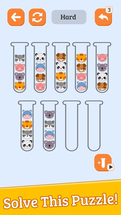 - Sort the same colored balls in one tube to complete the level.