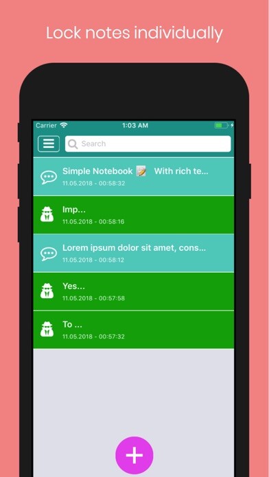 - Lock notes individually or directly lock app