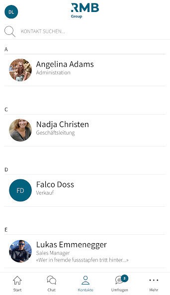 Find out the latest information about your company at any time, regardless of location, find your work colleagues easily and simply in the contact directory and chat 1: 1 or in group chats.