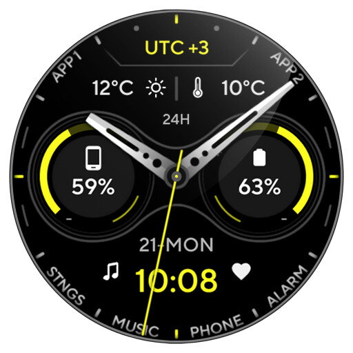 APP 1 / APP 2 - custom app - tap to set custom app (editable in watch face customization menu)