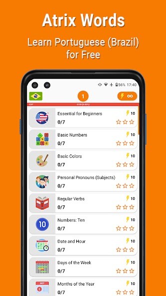 The app contains over a thousand words available to learn Brazilian Portuguese for free and will always receive updates with new features and words to learn.