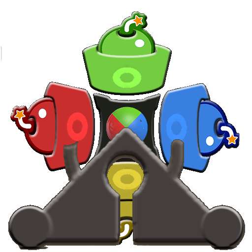 - Rotate and move the robot catcher to catch the bombs with his color.