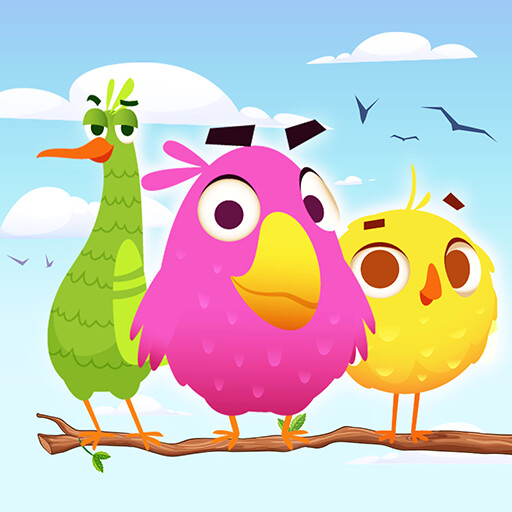 Match cute birds by their vibrant and beautiful colors! They can only fly away when the same colored birds are on one branch.
