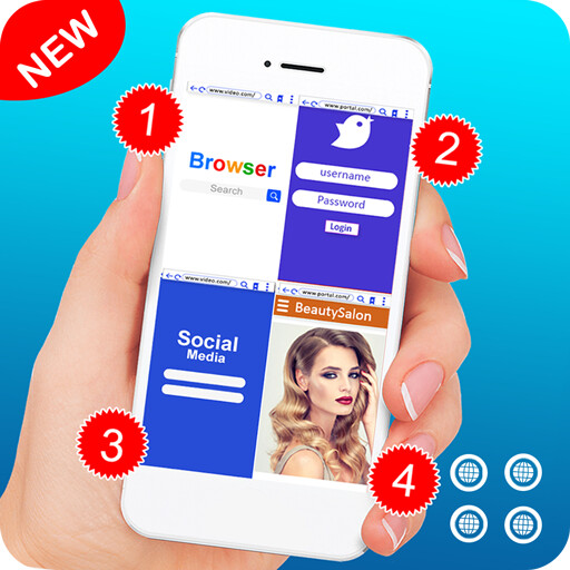 Browse two to four websites at one time in a single display of your phone best dual browsing application.
