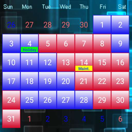 Work Calendar 24 is another Crown plant work calendar for those working a 2-2-3 schedule and can be downloaded from Google play.