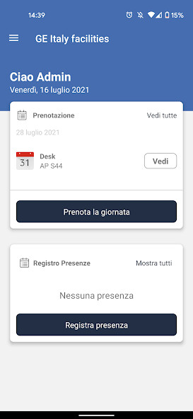 GE Italy facilities allows you to always be in contact with the head office, stamp your entrance to the office and quickly book your workstation or meeting room.
