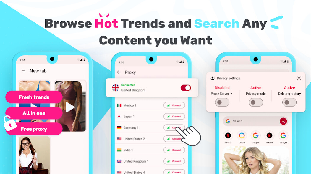 Watch videos and search hot trends for free.