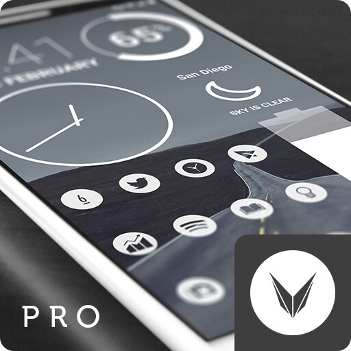 Light Void (pro version) is a simple, clean, minimal, flat icons, matching wallpapers, and widgets for clocks, battery and weather.
