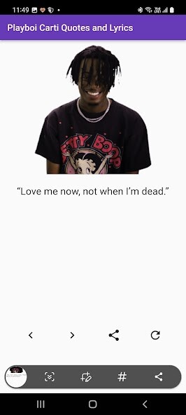 MyAndroid is not a downloader online for Playboi Carti Quotes Lyrics. It only allows to test online Playboi Carti Quotes Lyrics with apkid com.nsf.pboycartiquotes.nsfpboycartiquotes. MyAndroid provides the official Google Play Store to run Playboi Carti Quotes Lyrics online.