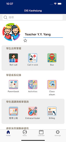 Calendar: View school events and holidays by monthly calendar.