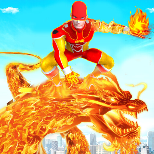 Flying Fire Superhero Flame Superhero Battle Game flame superhero can hit the lava beam and takedown the monster army and save the futuristic city under crisis.