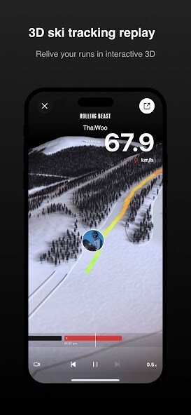 Replay your single downhill runs in 3D while you ride the gondola up, and share your single runs from the live tracking screen without stopping your tracking.