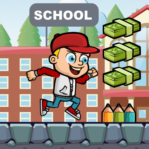 Student Run - Run from the teacher, avoid spikes and collect lunch money, unlock more friends and run with them, jump over the traps and slide under the pencil spikes, get the best score to challenge your friends in the leaderboard