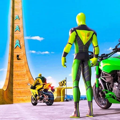 We provide Superhero Bike Stunt Games GT online (apkid: com.tt.superhero.bike.stunt.gt.racing.mega.ramp.games) in order to run this application in our online Android emulator.