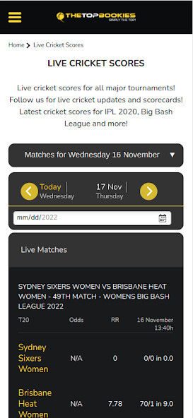 TheTopBookies is the number 1 cricket predictions app in India featuring all of todays games taking place all over the world, from Tests to T20s and IPL, with ODI also included.
