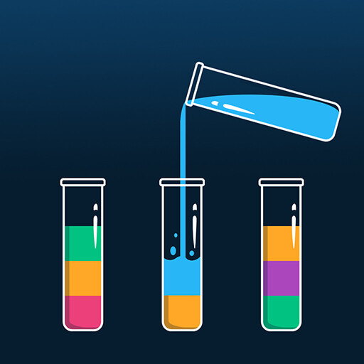 Fun game for memory exercise.The aim of the game is to collect liquids of the same color in a container by transferring the liquids in the containers to each other.