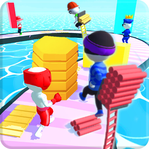 The goal of the player is to reach the finish line first by collecting planks and use them for building bridges across the water on both sides of the running track, which will allow you to take the shortcuts and shorten the race track.
