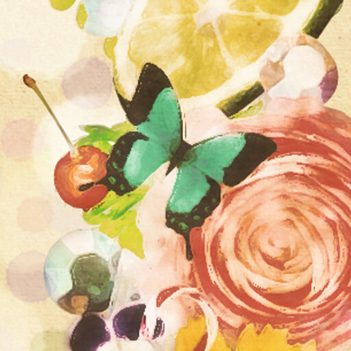 Flowers and jewels painted in watercolors give a gentle feeling.