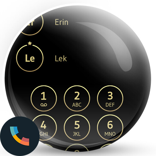 This is a dialer and contact manager theme with a classic circle gold and black color scheme.